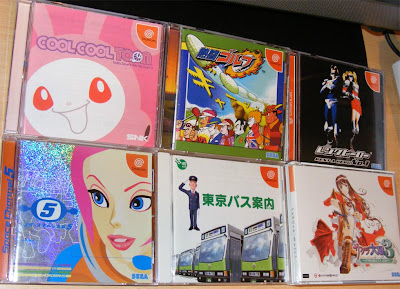 Here's another load of Japanese games I got cheap. I'm going to be digging out some translation guides to play Rent-a-hero and Sakura wars 3 (always wanted to see what the fuss was about with that series) and both Cool Cool Toon and Tokyo Bus Guide are quite addictive. I also have a japanese copy of Shenmue with the Jukebox CD, which means I know own Shenmue on every region. Oops! Probably best if I got rid of the PAL one then, to save shelf space.