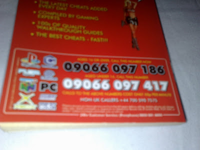 On the back of the book, was a full page advert for a business entitled, "The CheatMistress Presents: Cheats Unlimited" apparently "compiled by gaming experts". Again, the Dreamcast logo was proudly displayed. Now believe it or not, as recently as 2003, many people did not have Broadband or even 'dial up' Internet. People phoned "cheat lines", listening out for hints on a pre-recorded tape and furiously scribbling them down, missing something and having to phone again at premium rate, before finally being able to move forward towards completing a game... And we were fucking grateful for the privelige...