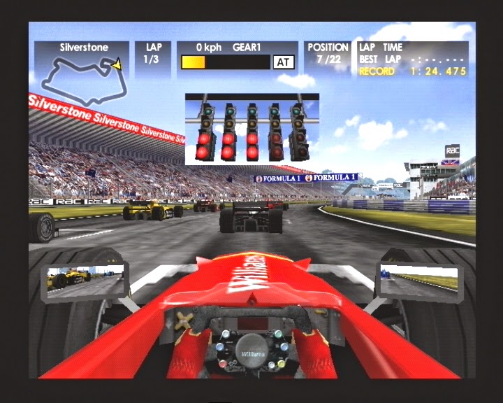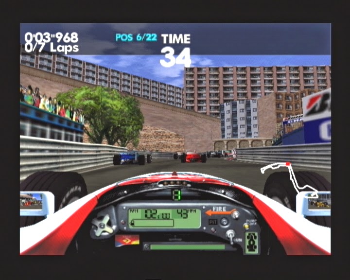 I honestly thought I'd already done a post on this subject, but a quick wander through our extensive archives here at the epicentre of all things vaguely Dreamcast (that's the DCJY, in case you wondered) reveals that I was mistaken. I say 'quick,' but I actually had to take a monorail ride into the very heart of the hollow mountain that houses the Junkyard's archive department, and even then one of the service droids that maintain the stacks had malfunctioned so I had to spend half an hour rebooting it. You just can't get high quality droids of ebay these days. Pfft. Anyway, at this juncture you may be wondering what I'm actually talking about. I'd almost forgotten myself until a bowling ball rolled off a shelf onto my head and the memories all came flooding back: Formula 1. Yep, F1. That 'sport' where fast go-karts smash around tracks at ridiculous speeds and the drivers of said go-karts live lavish, decadent lives and bathe in asses milk and snort caviar. Funnily enough though, that's probably the best way to also describe Mario Kart. Hmm. I went to an F1 race at Silverstone a few years ago and the first thing I noticed was how damn loud the cars actually are - unless you've been to a Grand Prix, you can't really appreciate just how loud the things are in reality. But I digress. F1 games on the Dreamcast - there have been several and they all reproduce the atmosphere and thrills of a big race with varying degrees of success. Which ones are worth playing and which ones should be left in the pits? Read on and all shall be revealed: