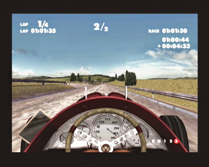 This isn't strictly speaking an F1 game but I thought I should include it anyway as it attempts to recreate the top level of motor racing...from 1937. I can't really fault it for originality and aesthetic design. The menu music is very appropriate for the era and the styling of the menus is very art deco. The officially licensed vehicles and tracks are also a nice touch and lend an air of authenticity to the game. Unfortunately things go a bit south once you actually start a race. Again - top marks for trying something different and I must say that the engine effects and in-car view give a real feel for the power and sound of the engines of these archaic beasts...but the handling of the cars is atrocious. The slightest touch of the analogue stick sends your vehicle bouncing off the walls and skidding all over the place. Not fun at all. There are some interesting game modes such as a scenario mode where you have to complete objectives, but overall Spirit of Speed is a bit...shit. Sorry.
