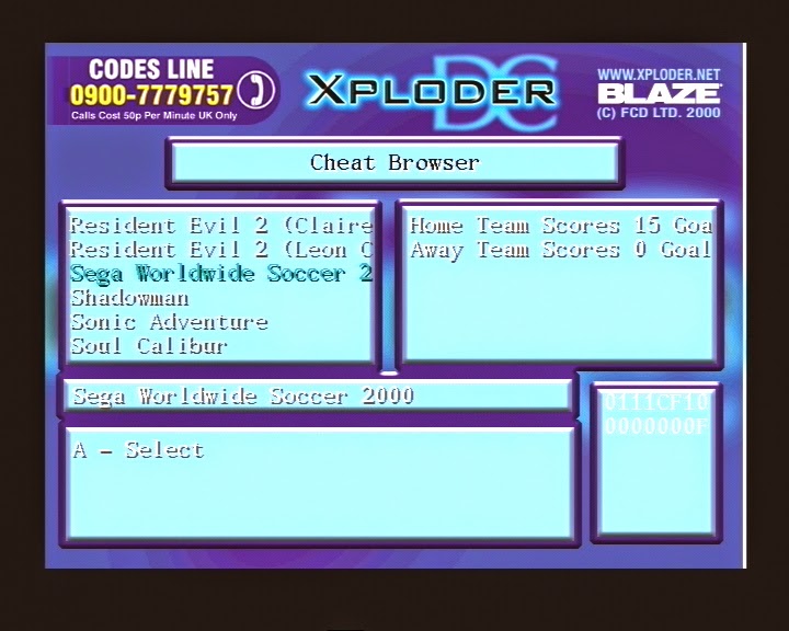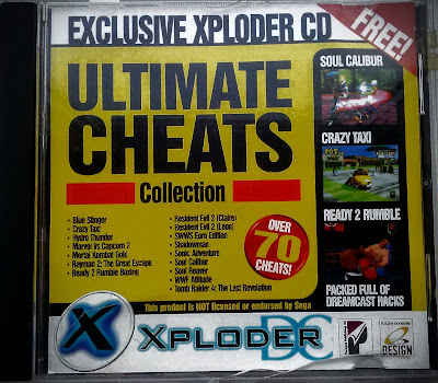 I bought this off eBay, again for a few pounds, as I had heard about a fabled cheats disc that had been given away with a magazine that inadvertently allowed for imported games to be played on a PAL Dreamcast. After a bit of research, it appears that this may have actually happened twice - once with a DC-UK cover disc and once with a disc given away with Paragon publishing's Dreamcast Magazine. This disc is the latter. It's actually meant to be a promo version of the Xploder DC cheats software, where you can select game-ruining cheats (why would you want 'all abilities' from the start in Soul Reaver, for example?!) but you can also completely skip the cheats and just put an NTSC game in and have it bypass the region lock-out. Works just as well as the others, with the added bonus of being able to start a match in Sega Worldwide Soccer with a 15 goal advantage.