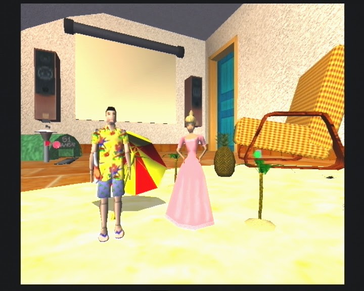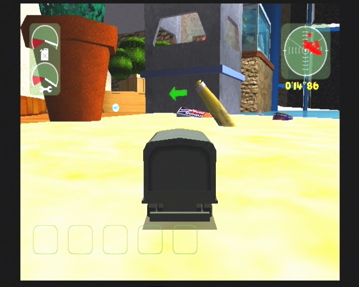 The second such exclusive demo, called Summer Special, was released on Dream On volume 11 in the UK and featured a brand new stage in which players were given the task of clearing a beach of rubbish, sharks and cockroaches so Barbie and Ken (or...er...Matt and Jenny for obvious reasons) could go skinny dipping without the worry of either having their heads chewed off or cutting their plastic feet on shards of glass...presumably left in the jacuzzi by the 8-year-old Toy Commander's alcoholic dad. It's a fun level and allows full exploration of another section of the house the main game is set within, and you can either take to the sky in a bi-plane and just blow the hell out of everything with biro-lid missiles, or you can play a slightly more tactical game by using the truck to transport the rubbish to the trash compactor in the kitchen. Which is located behind a mini bar, adding further fuel to the theory that the Toy Commander's dad likes a bit of a drink. Either that, or the Commander himself has been at the brandy...which would explain all these outlandish war games with his Matchbox toys. The other variant on the Toy Commander formula included on Dream On 11 is a race around the house with toy cars, but this is pretty forgettable due to the twitchy controls...and is clearly the original blueprint for the later (and yet aforementioned) Toy Racer.
