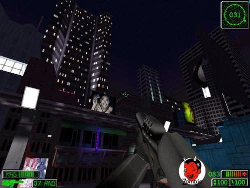 A very small section of one of the game's levels, in a nighttime setting, was playable at the E3 show. This urban area was cluttered with trash cans, elevators, and alleys. In terms of weapons, there wasn't much variety. Perhaps because the game was presented in a limited setting, the only weapons that were readily available were a straight machine gun and a short-range rocket launcher. Also, the only real power-up was an ammo recharge. According to a Ripcord representative, however, several new weapons and power-ups will be added to the finished product. In fact, according to the rep, most of the munitions in Shrapnel are based on real-life, experimental military artillery.