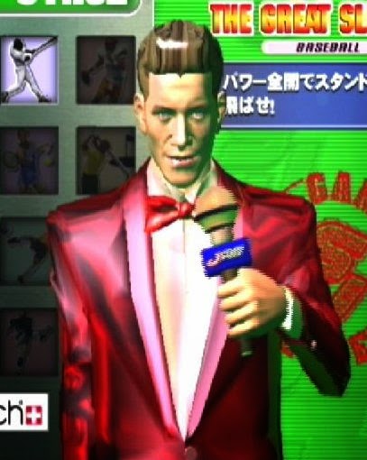 The graphics and animation are really quite impressive and I can't help but feel that if Sega had taken any one of the engines employed for these mini games and poured more resources into it, they could have been great fully-fledged games in their own right - the golf sections in particular look pretty darn good, and feature some lovely picture-in-picture camera shots and great scenery. If they'd taken this and turned it into a full-blown arcade golf game, then the Dreamcast could have had yet another ace up it's sleeve in the sports genre. As it is, Sports Jam is little more than a great-looking, nice sounding curiosity that will pass half an hour or so, but won't see many players coming back for more once the initial spectacle of the visuals has worn off. There is one final aspect of the game I really do want to touch on though - and it is the reason for this post's somewhat strange title: the 'host.' Here he is: