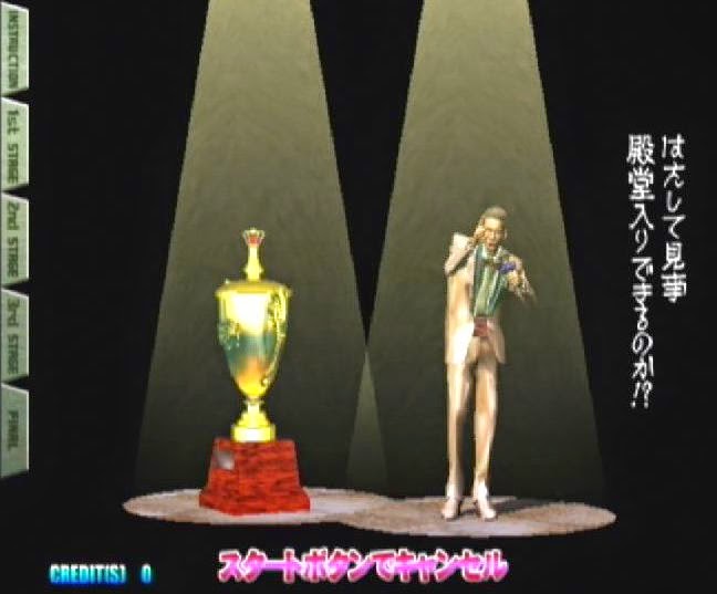 Finally, this abominable denizen of the uncanny valley appears to be seated in a darkened theatre, where his chair suddenly transforms into a massive trophy once he stands up. The question needs to be asked: is Sports Jam a Dantean metaphor for a trip into the very depths of Hell itself, with Beelzebub taunting your every failure and inviting you to travel deeper into his otherworldly lair? The evidence strongly suggests so. But then, I could - once again - be reading way too much into this. Look at the facts though: his hair growing into horns and his shiny red smoking jacket bear all the classic hallmarks of a modern spin on Lucifer - his appearance at first seems as plain and ordinary as you could hope, but upon closer inspection everything just seems a little 'off.' To use an old adage - the Devil is in the detail. And to use another (well, a line from The Usual Suspects to be honest), the greatest trick the Devil ever pulled, was to convince the world he doesn't exist. Except in Sports Jam for the Dreamcast...