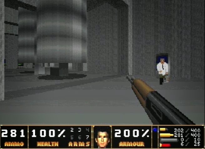 I make no secret of my love for the Doom franchise - as I've stated here and on other sites many, many times previously, Doom is one of my all-time favourite games and it's sequels and spin-offs are games I hold in extremely high regard. Due to this slightly worrying affection for all things Doom, I have amassed quite a collection of variants of the game and have pretty much every iteration of it for consoles - the only one I don't have in the collection is the 32X port and that's only because I don't actually own one of those mushroom-shaped monstrosities anymore. I have waxed lyrical about my penchant for id's sprite-based (and polygonal, the the case of the 3rd instalment) shooting series here at the 'Yard in recent months, but in this post I wanted to share some images I took from within one of the best mods I think I've ever seen for Doom...and one that I have had the pleasure of sampling via my Dreamcast SD card reader: the GoldenEye 007 total conversion.