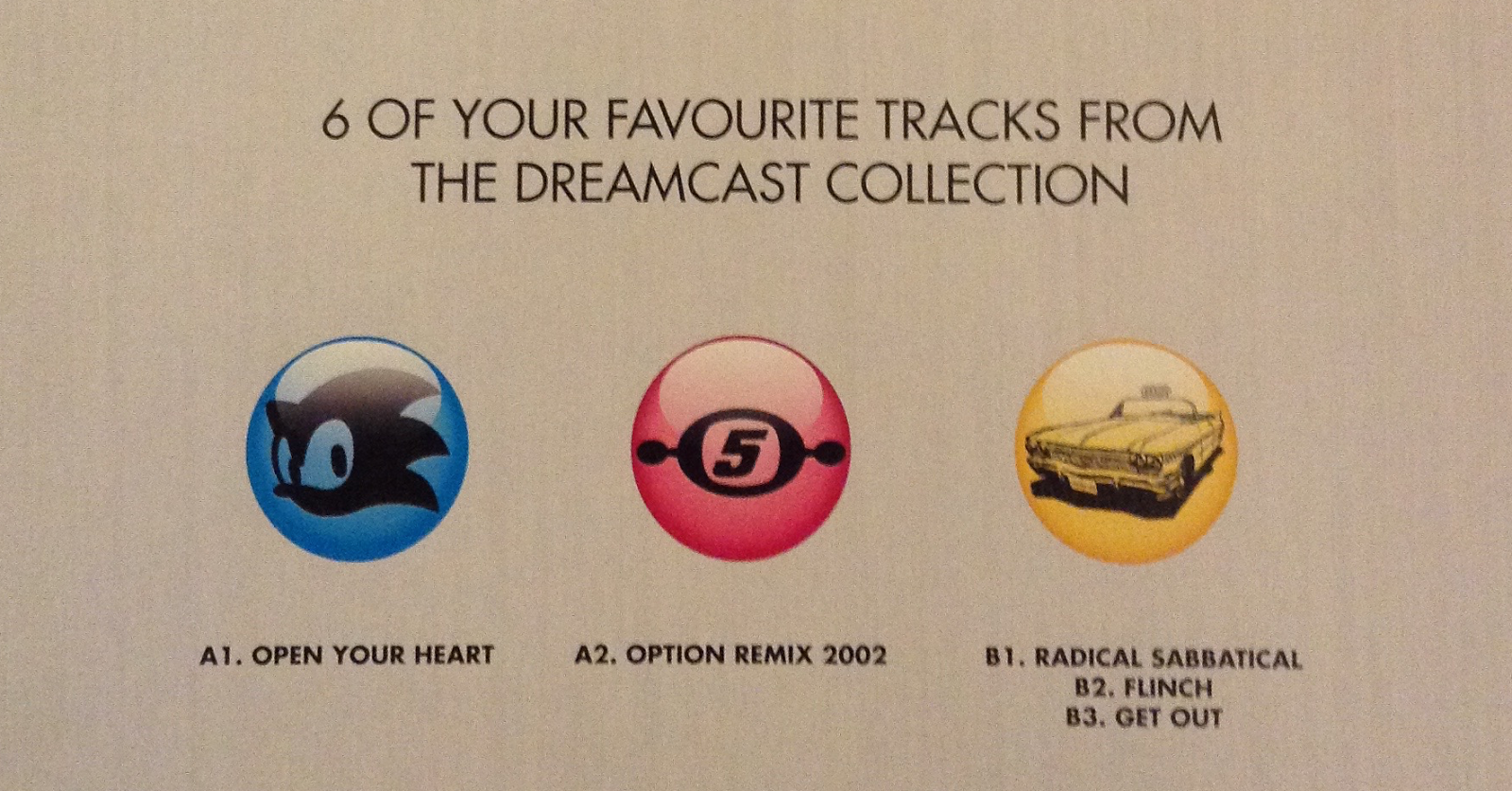These records were originally offered as a pre-order bonus in Australia when the Xbox version of the Dreamcast Collection launched back in 2011, and were only available from one particular retailer - JB HiFi. Furthermore, only 2000 were created and so this gives an indication as to how uncommon they are. The vinyls themselves come in lovely Dreamcast-themed sleeves and contain five tracks (not six, as the back of the sleeve oddly illustrates) from Sonic Adventure, Space Channel 5 and Crazy Taxi. The vinyl is of a lovely off-white hue and mirrors the Dreamcast's tone very nicely. They probably sound pretty good on a turntable too. As we have three of these to give away to three winners, we thought it would be cool to run three separate competitions with the winner of each being awarded a vinyl. So here's what you need to do to be in with a chance of winning the first vinyl for your collection...