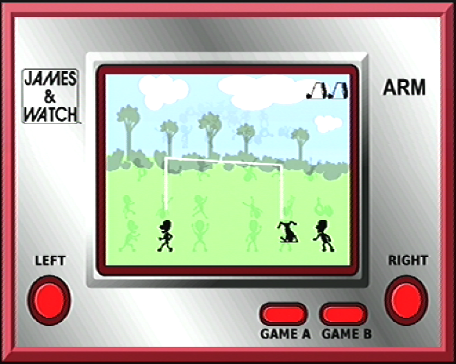 James & Watch was actually borne out of a story that was told on popular retrogaming podcast Retrogaming Roundup back in 2012. As detailed on the back of the professional-looking jewel case, James & Watch: Arm is based on the true story of the three James brothers, whom back in 1972 decided that it would be fun to throw youngest sibling Mike up in the air and catch him. The two older brothers quickly grew tired of this spin on 'catch,' and decided it would be more fun to throw Mike up into the air...and not catch him. The resulting broken arm is what gives the game it's subtitle.