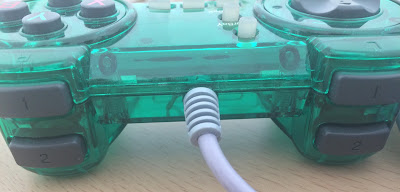 Now on to the good stuff. The pad feels great in the hand, and as it's a verbatim reproduction of the PS1 pad's form factor, that's to be expected. The D-pad is also a winner and much better than that thing on the official Dreamcast controller. I'm not entirely sure if this is an 8-way controller, but it is certainly a lot easier to execute moves in a lot of the 2D fighters I tried the Game Heaven with (more on this in a moment). Generally, the whole thing feels very solid and the buttons do not rattle in their sockets like you'd expect; while the general finish of the plastic housing is of a pretty good standard. It's very shiny and polished, which makes the thing a complete handprint magnet, but lets be honest here - who the hell is going to come round to your house to inspect your Game Heaven pad with a magnifying glass? Apart from me, I mean? Exactly.