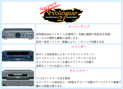 It seems that the Dreamcast Karaoke Unit was far from Sega's first foray into the world of home karaoke technology and there are a few pages showing download charts and other bits of compatible hardware (the 'Super Prologue' range is shown above) that would allow Japanese consumers to log on to the web-based service and download songs to sing in the comfort of their own homes. I would image that these were also capable of playing compatible CDs too - something which the Dreamcast Karaoke Unit is sadly not able to do. Either way, these pages offer a fascinating glimpse into an almost hidden past and show just how big Sega's plans for the Dreamcast were in Japan.
