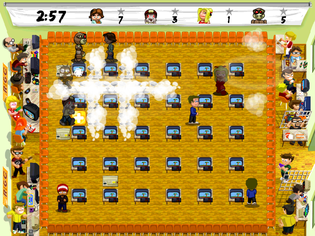It's a long story! We first worked on the project of a platform game. In 2003, Nicolas read the novel by Lewis Carroll, Alice in Wonderland, and proposed to me the idea of a modern Alice in a different vision. We worked on this game until 2006. At the end of each stage, we wanted to unlock a mini game. So we worked on a clone of Bomberman, playable by 4 players simultaneously. And then, we read about a contest (Dream On Contest 3) and we wanted to present this mini-game with 3 additional game modes. The contest was canceled but we presented the game to some players in a retro-gaming event and they encouraged us to continue to develop the game.