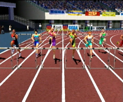 probably want more.The game does at least look decent, with a good looking stadium and plenty of camera angles to give a realistic impression and plenty of crowd noise setting a good atmosphere. The Athletes are a little blocky, but they don't look too bad. The record keeping is also in depth and you can load other VMU data, and in addition to this, the athlete creation mode replaces the cartoony athletes from the Saturn – although I'm not sure if that is ultimately a good thing. When creating your athlete, you can give him (and it is only him, no females in this game) several 'interests', whether that be athletic events, team sports, winter sports or even the type of music he likes. These interests will then give your created star different hidden stats – so for instance a character who lists an interest of 'Sprinting' would be a dead cert for the 100m. It's a cool concept, but is wasted. There's no indication what your athletes stats are, no RPG style system of improving them, and perhaps worst, to unlock more you need to compete several times in the exhibition mode of the game. This is ultimately the game's biggest weakness. Coupled with the serious lack of events, there's only an arcade mode and a barely customisable 'exhibition' mode to play through.