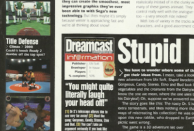 The cover feature was for a report on upcoming zombie-themed titles, and other highlights were a look at the worldwide differences in Dreamcast advertising and reviews of Soul Calibur, Speed Devils and Red Dog. Elsewhere the Forecast section throws up some more 'lost' games in Arcatera, Title Defense [sic] Boxing and Felony Pursuit (see scans above) and the Newscast sheds some light on the Dreamcast's delayed PAL launch. Anyway, enough blathering from me - enjoy the video!