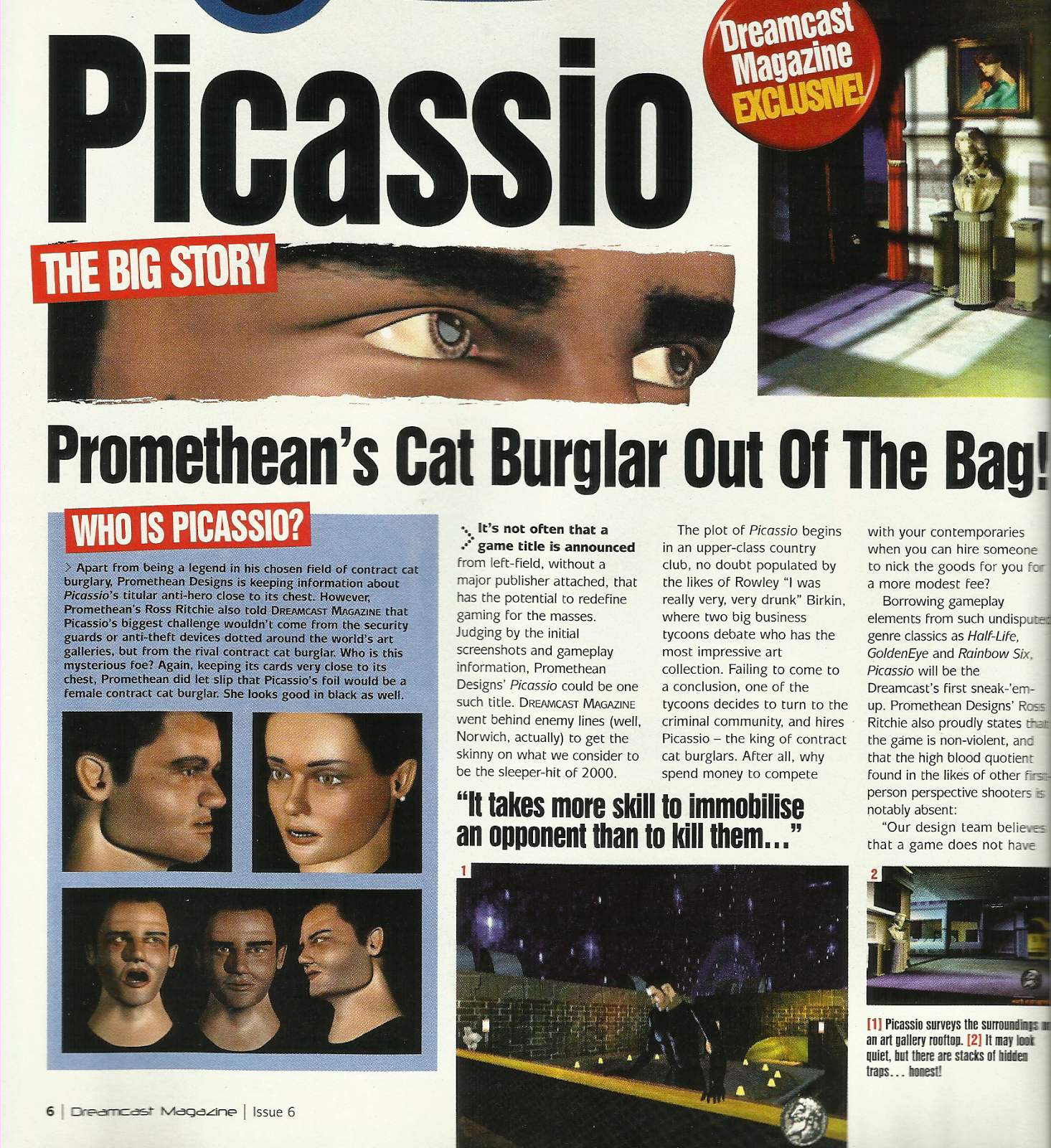 Issue 6 of Paragon Publishing's unofficial Dreamcast Magazine was available from the 24th February 2000 and marked the first time Lara Croft appeared on the mag's cover. Following in the tradition set by preceding issues, several features on arcade games that either weren't announced or had nothing to do with the Dreamcast are included, although to off-set that there is a fairly lengthy 'history of racing games' article, complete with previews of upcoming Dreamcast driving titles. Issue 6 is particularly interesting in that several high profile abandoned games are showcased, with Picassio, DroneZ and Felony Pursuit all being covered, and Midnight GT also gets a small mention.