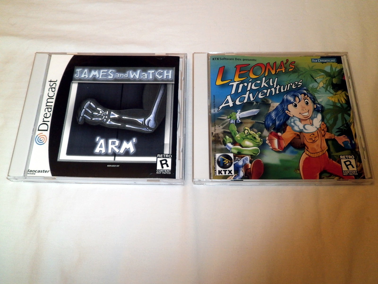 Leona's Tricky Adventures with more appropriately coloured white trays. I could have gone with clear trays, like the American releases, but since there is no inlay art, the white plastic of the Japanese style release was the way to go if I wanted these new games to look the part on any respectable Dreamcast shelf. White trays are usually hard to source, but I found a supplier in Australia (