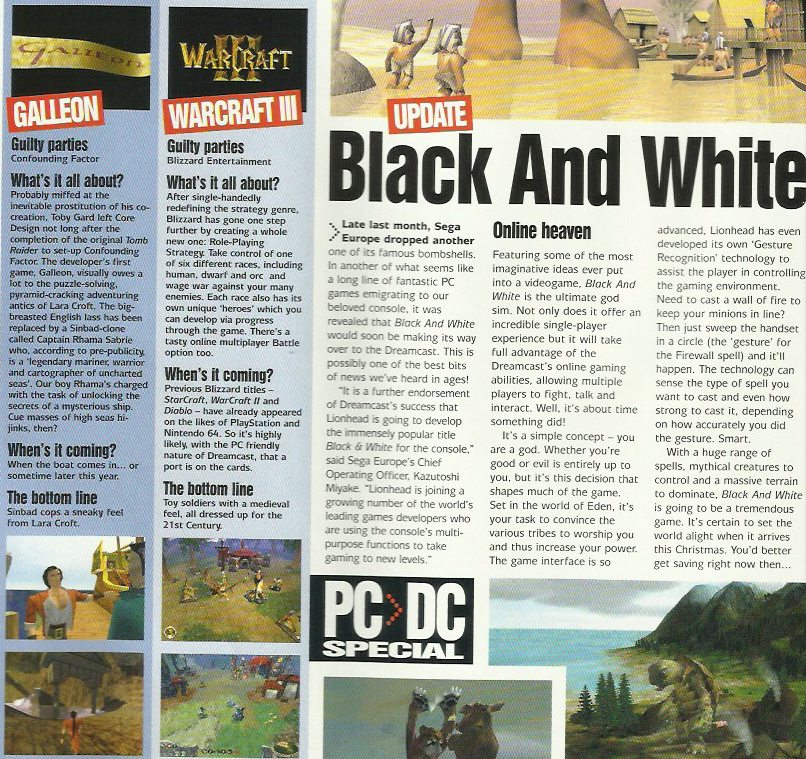 Previews in issue 7 include the cancelled Black & White (along with an interview with Peter Molyneux), Roadsters, Tech Romancer, Ecco and Hidden & Dangerous. There are also several lengthy features, one of which looks in depth at The Nomad Soul and the music of the late David Bowie. Other features include a look at future arcade releases and the role of women in video games. Games reviewed include Tomb Raider: The Last Revelation, Sega GT, MDK 2, Rayman 2, Jojo's Bizarre Adventure and Wild Metal.