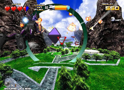 Spiritual successor to Space Harrier, this game plays more like Panzer Dragoon than the series it spawned from. The cabinet uses an analogue joystick for targeting, but gives the user slightly more control over the position of the character on screen, allowing a skilled player to move or dash out of the way of incoming enemy attacks. As in Panzer Dragoon however, the game is set on rails and doesn't allow you to deviate from the designated path of each level.