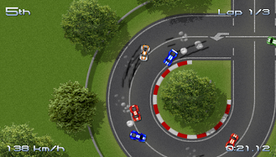 Rush Rush Rally Racing is a top down racing game released by Senile Team in 2009, and while I've been aware of the game for ages it's taken me until now to actually acquire a copy and play it. I know, I know...I can only apologise. The fact of the matter is, Rush Rush Rally Racing (henceforth referred to as R4) is one of those indie games that has increased in price/value exponentially since it was released and so I've never really had the funds or inclination to buy a copy for my own collection. That all changed recently when I was perusing a stall of gaming trinkets at Revival Solstice and asked if the seller had any Dreamcast games other than the NTSC-J copies of Blue Stinger and Pen Pen TriIcelon he had adorning the table. He produced R4 and was asking only £20, so I bit his hand off. Not literally you understand, but for that price I couldn't refuse.