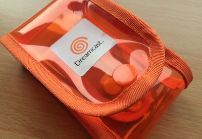 Now, before I continue I realise that this is hardly a new thing to be talking about. Well, it's new to me...but what I mean is that this device has been covered previously by Adam Koralik on his YouTube channel and there are entries about it on both Sega Retro and Wikipedia. What I'm doing here is giving my own thoughts and opinions on an item I hadn't previously held in my own two hands. Now, the first thing that surprised me when I furiously ripped open the envelope that Royal Mail had somehow managed to screw into a perfect sphere before stuffing through my letterbox, was that the Dreamcast Memory Card 4X was contained inside a rather lovely luminous orange pouch: