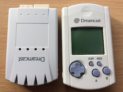 First, it doesn't have a lid for the business end and as far as I can ascertain, it never did. Even brand new in box Dreamcast Memory Card 4Xs did not ship with a little plastic end capsule to protect the connectors. Even stranger, the ones from a standard VMU will not fit due to an extra bit of plastic moulded to the connector, and the fact that the top of the card is a different shape.