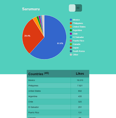 It was quite a shock to see that Sarumaru had almost 27,000 likes despite his portfolio consisting of only two issues of a web comic, a character for a gaming event and some work for a small browser-based game. For reference, that's almost three times as many as the popular YouTube channel Gamesack, and over three times the number SEGAbits have managed to accumulate in their decade of existence. What's even more surprising is the huge number of followers he has in Mexico and the Philippines. He's also not doing too badly in Argentina, Chile, El Salvador and Puerto Rico despite his page being entirely in English. Oh, and just 802 of his 26,981 likes are from the U.S.A.