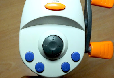 The handle is comfortable to hold and the buttons are all easily accessible with a thumb, while the underside features a moulded notch where an index finger just naturally wants to rest. The only issue I have with the official fishing controller is that the reel winder has no resistance or feedback whatsoever - it simply spins and emits no clicks or indication that it is working unless you're playing a game...but then why would you be winding a Dreamcast fishing controller in the absence of a game being on your TV screen?