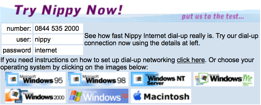 Username: nippy Password: internet Telephone number: 0844 535 2000