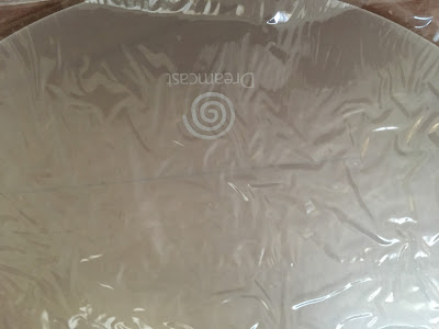 Another exclusive item, the mouse pad included with the Internet Starter Kit is a large, flat plastic disc in a similar hue to the mouse and keyboard, and also has a Dreamcast logo imprinted. The example shown here hasn't been removed from the plastic sleeve, hence the wrinkles.