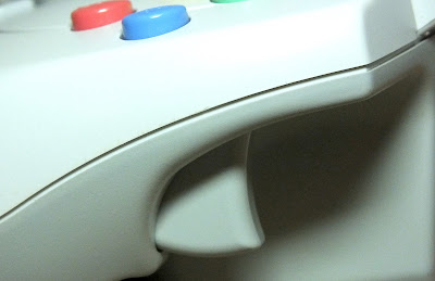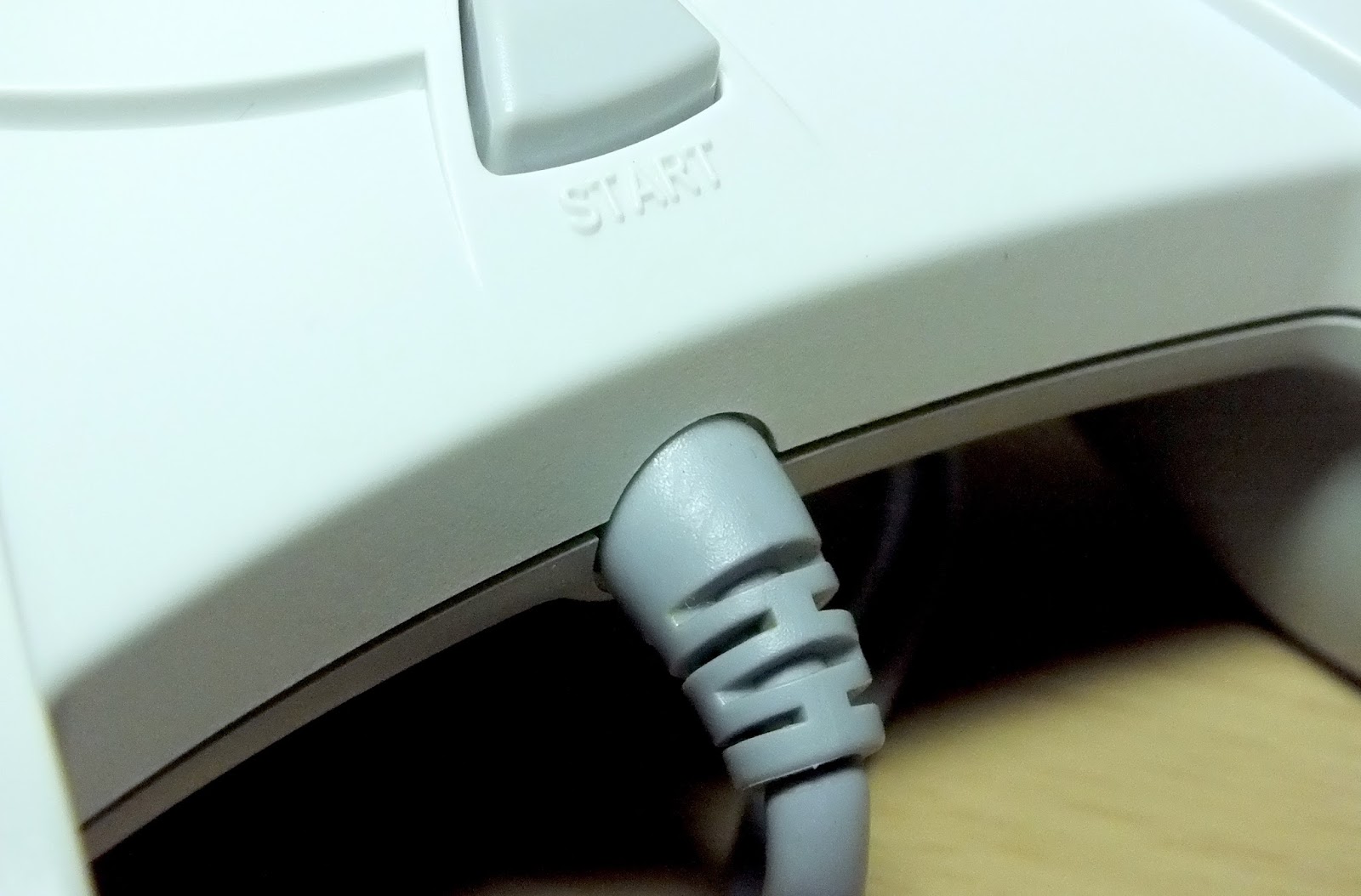Moving away from the analogue stick issue for now, the other main gripe a lot of people have with the Dreamcast controller is the placement of the controller's wire. It protrudes from the bottom of the controller, closest to the player, rather than from the top like with most other wired peripherals. This is most probably down to the placement of the apertures for the VMU and rumble accessories and routing the controller wire through the housing and out through the top (either above or below the expansion ports) would potentially have presented two issues for Sega.