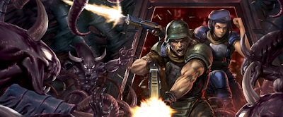 I can only imagine Bitmap Bureau grew up with the same dizzying expectations of our future. For them, the future was clearly 'out there', rather than 'stay at home', and in this new release for the Dreamcast, it seems mankind has indeed ventured away from our terrestrial origins, and made a life for ourselves amongst the stars. Of course, for every Utopian prediction that science-fiction gave us, there was a darker, grimmer dystopia waiting around the corner. For every Star Trek, there's an Aliens, after all. It's safe to say, that the universe that Bitmap Bureau believes mankind will inhabit may have just a touch of the latter - even the title of this new release hints at that. Xeno Crisis - not 'Xeno family picnic' you'll notice, paints a universe in which the Earth's best and brightest must deal with a threat of the extra-terrestrial kind. A distress call is received, and our guys at a research station seem to be dropping like flies due to a serious bit of unwanted alien violence. Step forward Commander Darius and his elite marines, our best hope at beating this off-world menace, now tasked with taking on whatever nasties the galaxy throws at them.