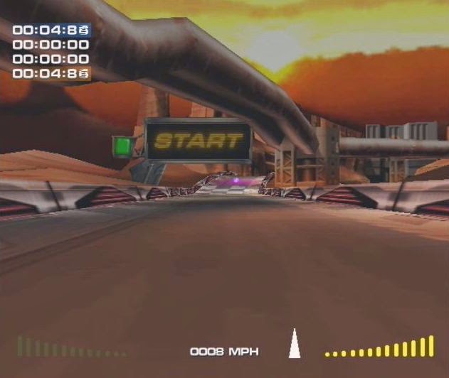 Set on an asteroid and beating a path through a maximum security prison, the Galactic Podracing course Executioner is one that takes racers through various terrains and environs. The start of the course is in a fairly standard enclosed area, with bright floodlit concourses and a nice view of the asteroid belt above. This rapidly changes though, as competitors are soon thrown together as the course narrows and you are funnelled into a muddle of zero gravity mining tunnels - complete with errant floating boulders - and cavernous underground halls, where the entrances and exits have a habit of changing shape as you pass through. There are multiple routes through the course too, and more than one area where turning your pod racer on it's side is essential if you want to avoid certain death. As with Rush 2049, Episode 1 Racer also appeared on the N64 (and also PC and later the PS2) so isn't strictly a Dreamcast-exclusive track...but it's so atmospheric and exciting that I couldn't help but include it in this run down.
