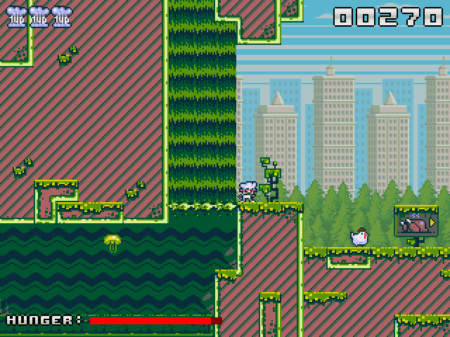 The game oozes a charmingly nostalgic All Hallows Eve atmosphere, with a suitably ghoulish 8-bit soundtrack (which may not be to the masterful level of some indie offerings, but considering the limitations of the original hardware, is rather good) and a colour palette full of oranges and browns to give it an autumnal look, as well as eerie blues, blood reds and the blackest blacks, really making the most of those hardware limits again. Woog Worx really do deserve credit for their character design and spooky atmosphere. Ghoul Grind sits in a perfect cross-section of 8-bit, Tim Burton and horror aesthetic.
