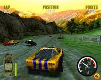 You remember Demolition Derby, right?! That ancient PS game where you smashed cars into each other in an attempt to bed the opposing redneck's teeth into their dashboard? Yeah? Cool. Demolition Racer is a game that follows the same template, albeit with vastly superior graphics. Apparently a port of an older PSX title, the first thing you may notice about Demolition Racer is its outstanding soundtrack. Whilst today's games (most notably those released by EA) often feature soundtracks by real-life bands, back in the day it was quite unheard of (for the first, see crap top-down shooter Loaded), and that's why Demolition Racer's is so unique. Granted, the bands on show are fairly obscure ('Cirrus' and 'Coffee Shop Boys' to name but two), but their tunes are really rather good and fit the mood of the game perfectly. Unlike that hideous creation blaring out during the first stage of Sonic Adventure 2. Rolling Around at the Speed of Sound, indeed. So, it's a redneck simulator where you can race against other cars and smash into each other to earn points; or you can take part in a proper destruction derby in a 'bowl' and, erm, smash into each other to earn points. It differs from Destruction Derby in that the tracks are strewn with power-ups and the like, and the damage models are quite basic considering it's whole focus is on destruction...but it's good fun and like I said, the soundtrack rocks. Good stuff overall. Why it didn't get a PAL release I'll never know, but it may have something to do with the above Baldrick situation.