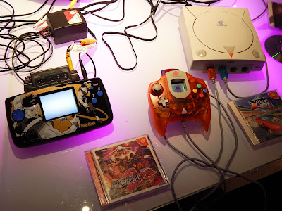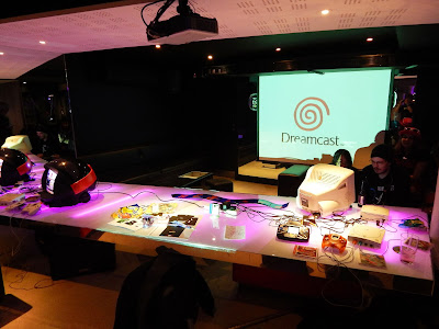 When I said in the Top 200 Dreamcast games article that I was celebrating in style this is what I meant. Finally got around to editing this footage together so you could see what REZtron's Dreamcast Anniversary party at the Hoxton Pony in London was like. There were several CRT's and a projection screen for the dozen Dreamcast's to play on: there was even one hooked up to a game Gear TV Tuner! There was a whole pile of games as well as classic Sega magazines, as well as custom artwork framed on the walls and a Mega CD with Karaoke add on and Master System with 3D glasses!